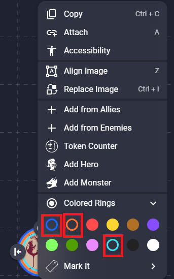 This makes it easier to tell them apart. Select a token and open the menu.