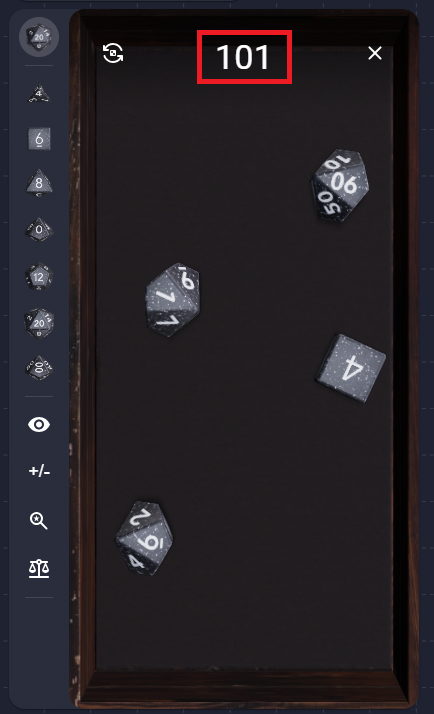 The +/- symbol opens a menu that lets you add or subtract from your roll.