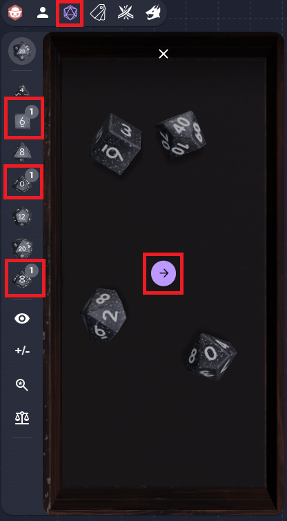 Select dice and they are added to the pool. Push the arrow to roll.