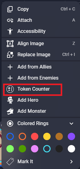 You can increase or decrease a token’s number, as well as change the color.